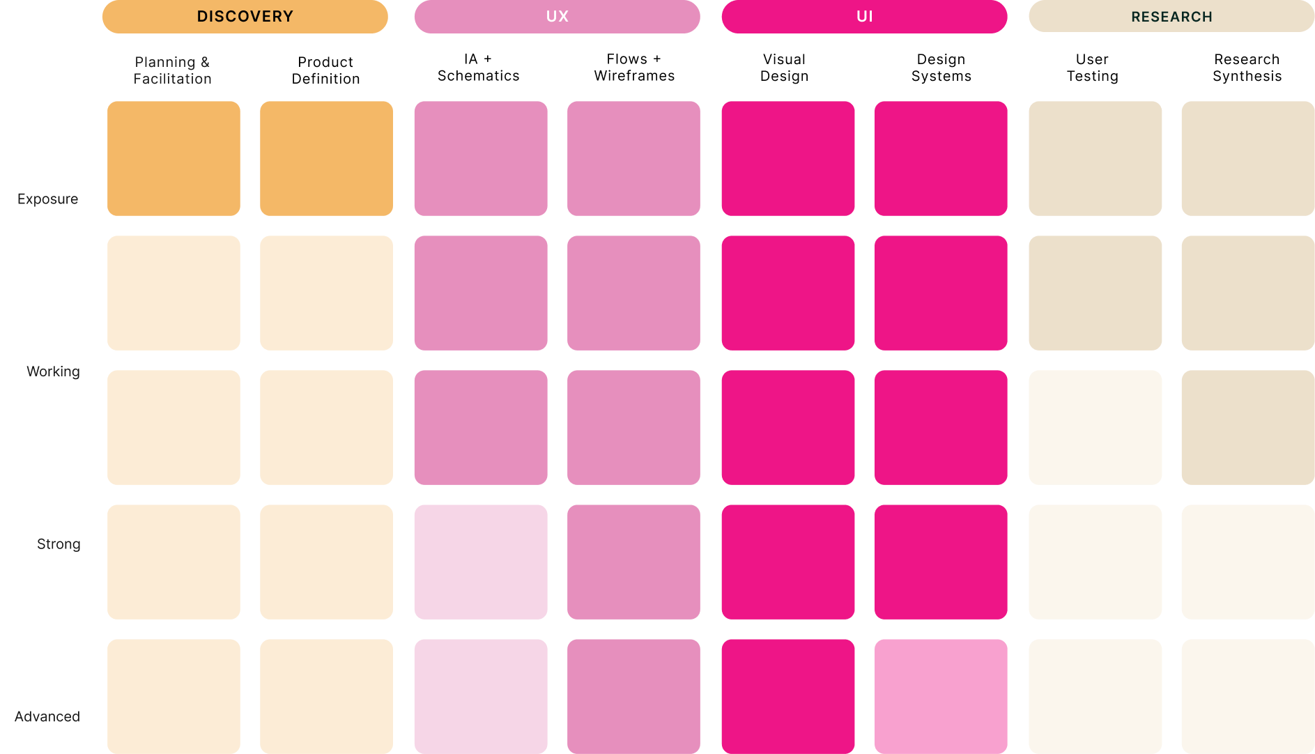 “She ran weekly team retros, owned an entire flow in the prototype (a major deliverable), built out components for the design system, created decks for not only design deliverables but also product and architecture deliverables, and she would jump in and help any time anyone needed anything.”